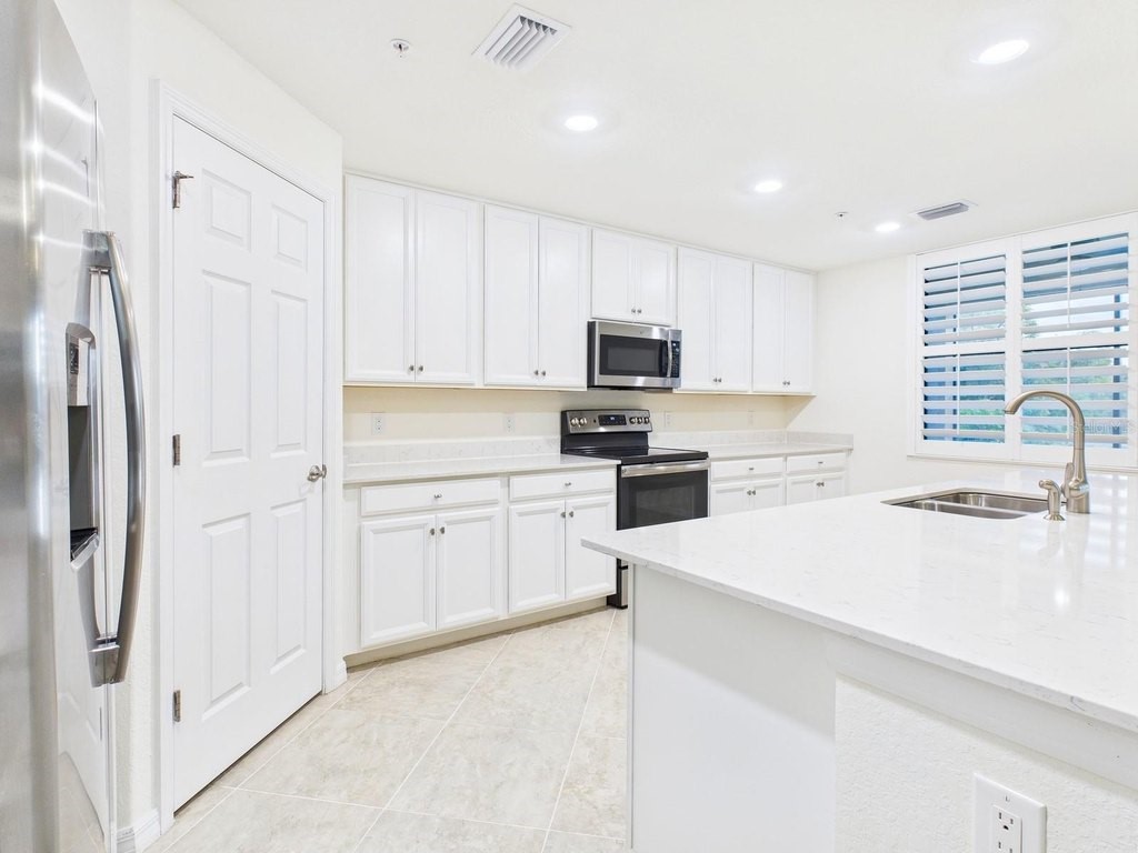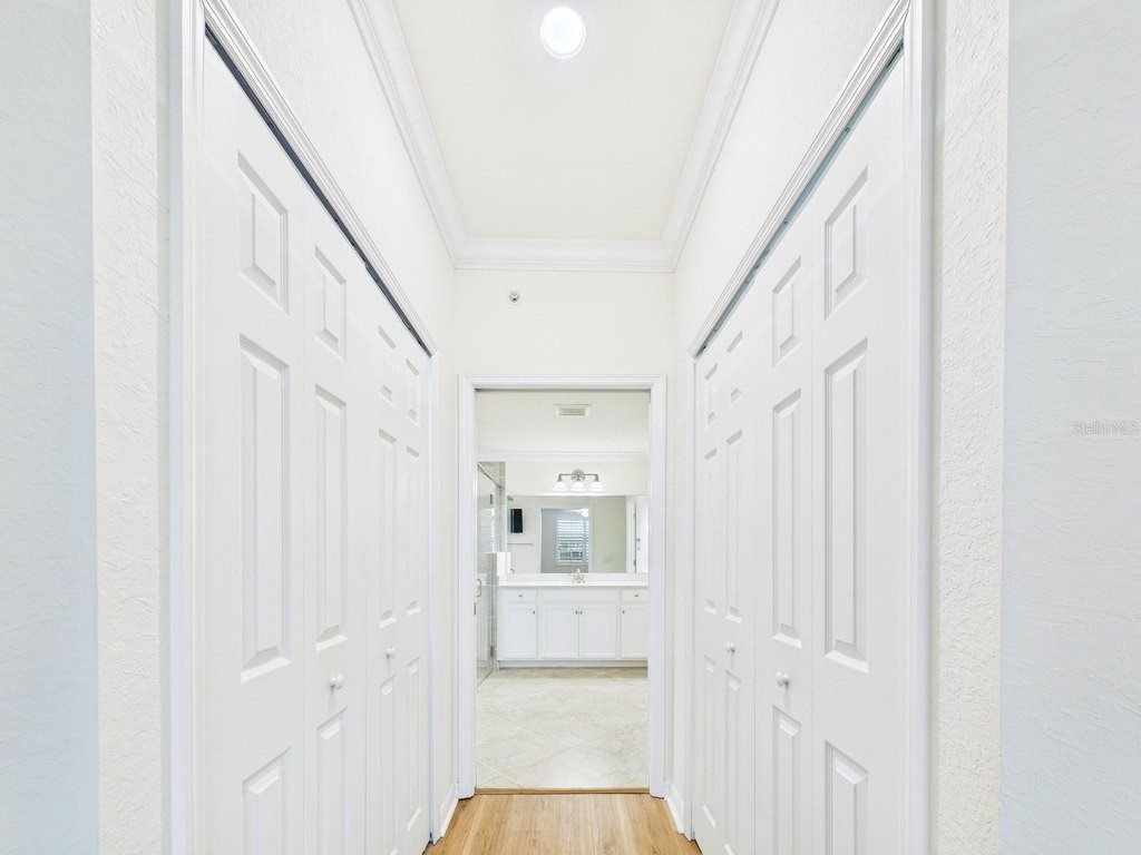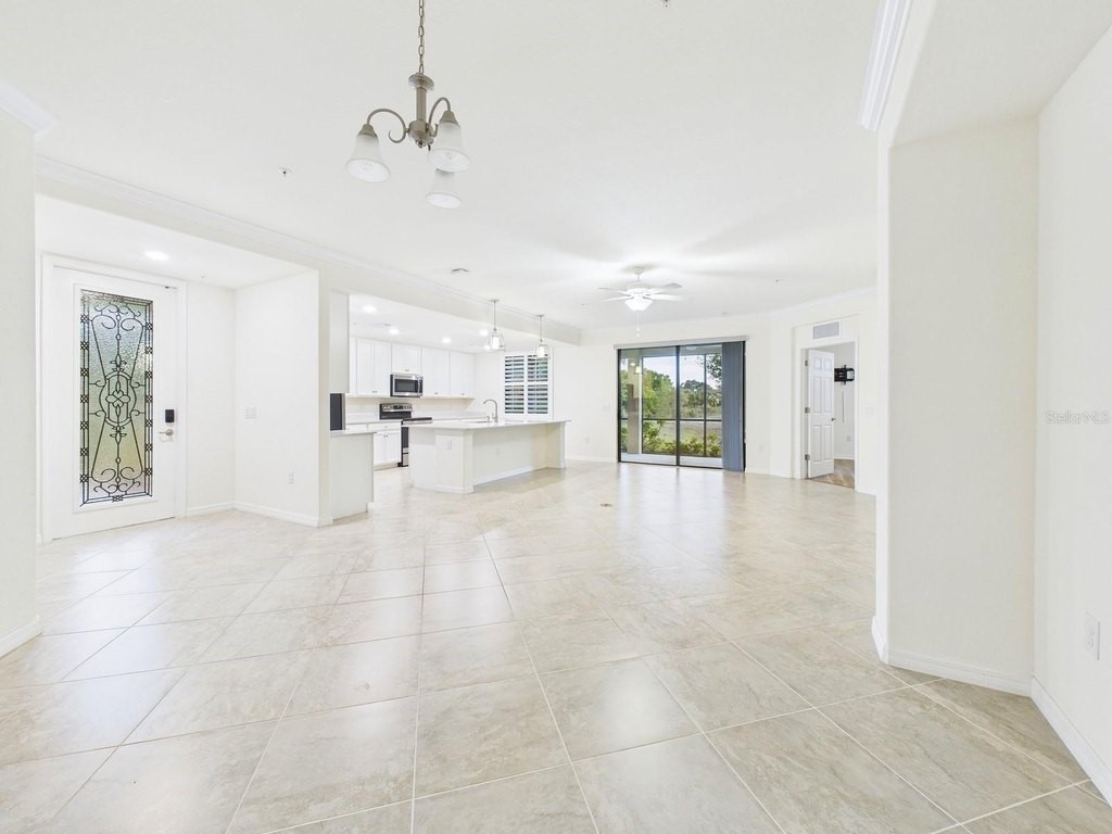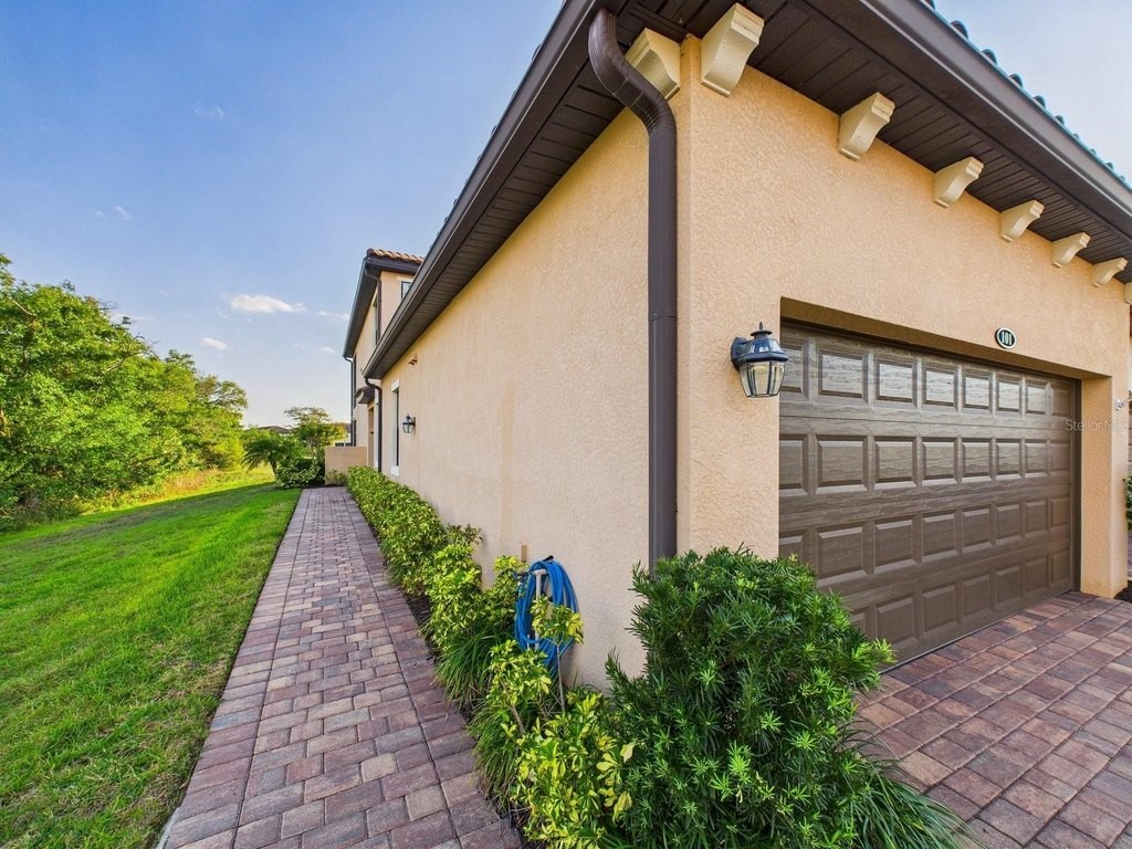 Nestled behind the gates of Gran Paradiso, this beautifully appointed coach home offers a perfect blend of comfort, privacy, and resort-style living. As a desirable end unit, it enjoys a unique setting bordered by a natural preserve on one side and a pond on the other, creating a serene backdrop that enhances both tranquility and scenic beauty. The screened lanai, accessible from the main living area, invites you to relax and unwind while taking in breathtaking sunset views. This inviting outdoor space also provides direct access to the primary suite, seamlessly connecting indoor and outdoor living. The primary bedroom itself is generously sized, offering a peaceful retreat complete with two spacious closets and a well-appointed ensuite bathroom featuring dual vanities and a curb-free, glass-enclosed shower. Inside, high ceilings elevate the sense of openness, filling the home with natural light and an airy ambiance. The thoughtfully designed floor plan promotes a smooth, effortless flow between spaces, making everyday living as well as entertaining feel both comfortable and refined. The spacious kitchen is equipped with abundant counter space and ample cabinetry, ideal for preparing meals or hosting gatherings, while the adjoining great room serves as a welcoming hub for dining and relaxation. Whether you're enjoying quiet mornings on the lanai, hosting friends and family, or taking advantage of the plentiful amenities within Gran Paradiso, this coach home presents an exceptional opportunity to embrace the very best of the Florida lifestyle.